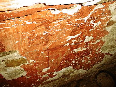 Fresco depicting a human figure holding a God K ("Manikin") scepter.