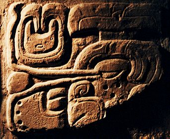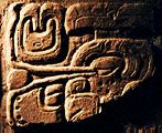 Glyph N16 it was the last seeing of the moon -- Schele, 1988 the lunation was 1 day old -- Robertson, 1985 |