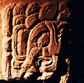 | This glyph, read K'INICH-K'AN-JOY-CHITAM, is the name of K'inich K'an Joy Chitam II (formerly known as Kan Xul), the second son of Pacal the Great. |