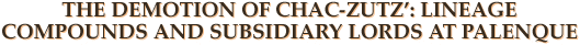 Chac-Zutz' and the history he recorded on the Tablet of the Slaves has been the source of dispute since Peter Mathews and I presented the dynastic history of Palenque at the Primera Mesa Redonda (Mathews and Schele1973).